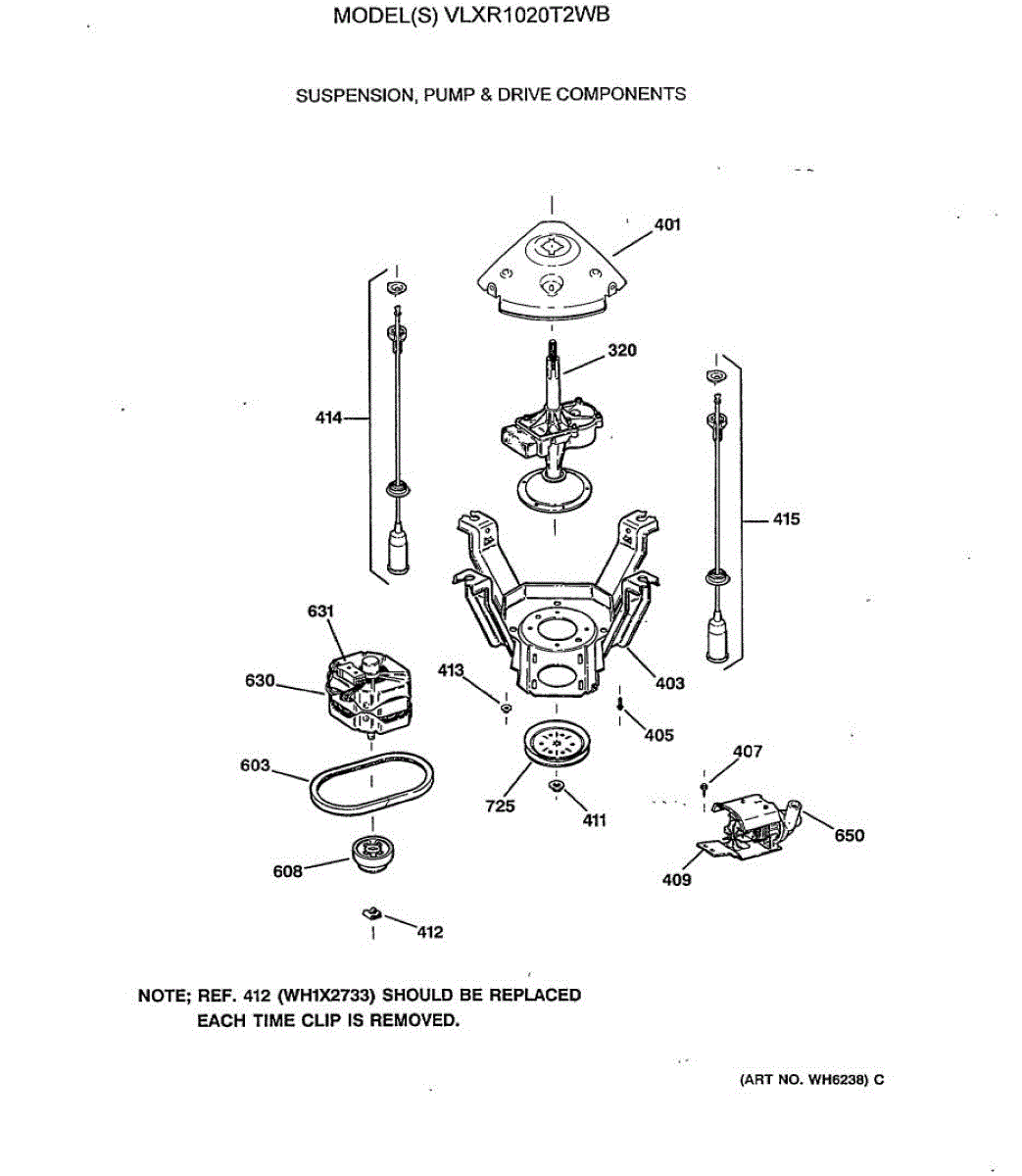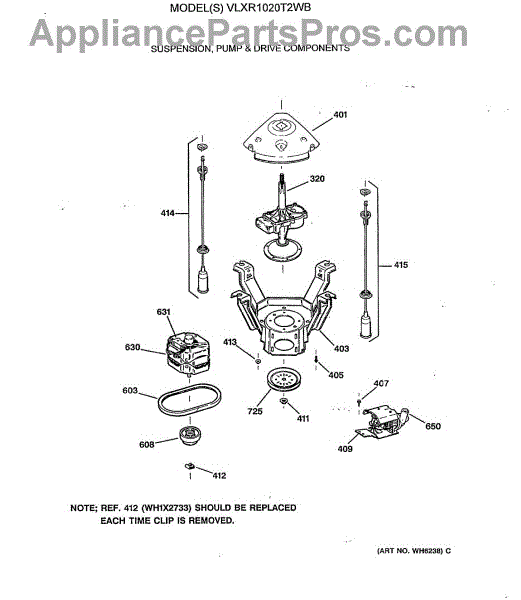 For retaining clip separately use WH1X2733. For washers with removable front panel.