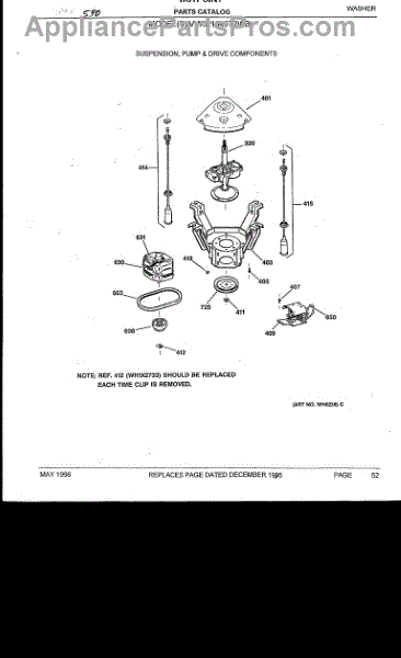 For retaining clip separately use WH1X2733. For washers with removable front panel.