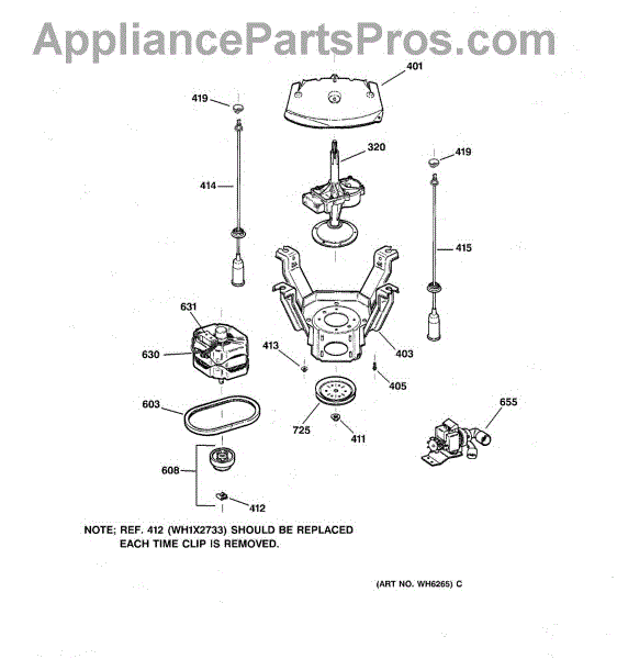 For retaining clip separately use WH1X2733. For washers with removable front panel.