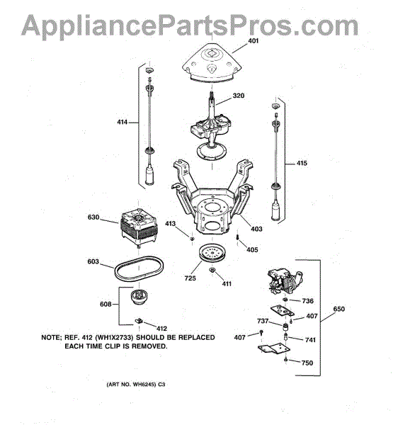 For retaining clip separately use WH1X2733. For washers with removable front panel.