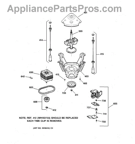 The Suspension Rod & Spring Assembly is an OEM part for GE washing machines. This assembly helps support the washer tub, reducing vibrations and maintaining balance during the wash and spin cycles. It ensures that the washer operates smoothly and minimizes excessive movement.