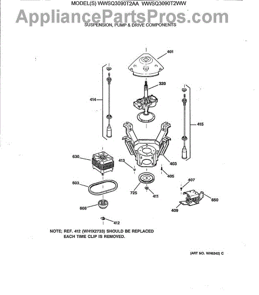 Parts for Ge WWSQ3090T2WW: 04 - Suspension, Pump & Drive Components Parts
