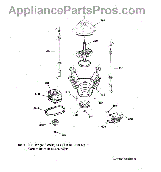 For retaining clip separately use WH1X2733. For washers with removable front panel.
