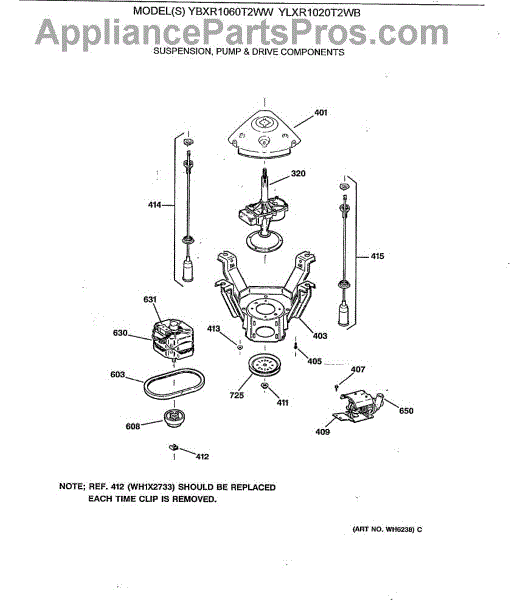 For retaining clip separately use WH1X2733. For washers with removable front panel.