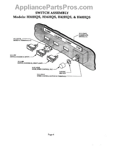 Parts for Thermador H42HQS: 04 - Switch Assembly Parts