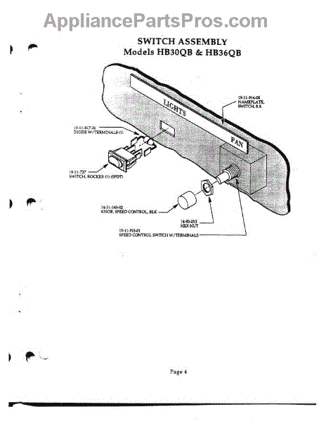 Parts for Thermador HB36QB: 04 - Switch Assembly Parts