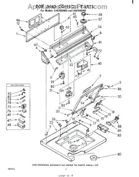 Parts for Whirlpool LHA7685W0: 04 - Top And Console Parts
