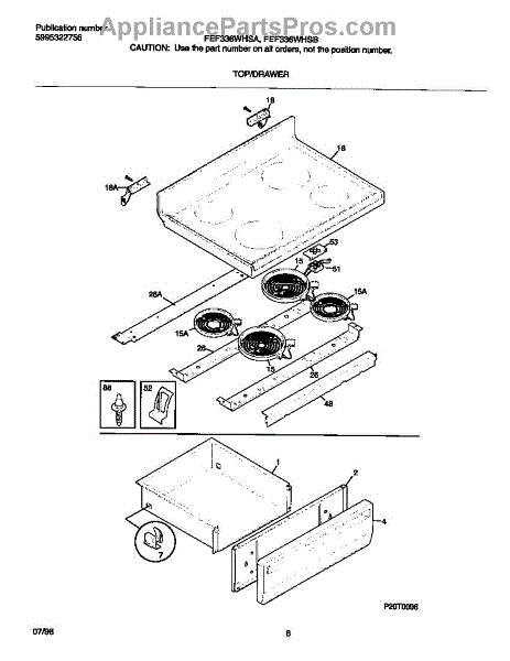 The Surface Element is an OEM replacement part for Frigidaire electric ranges, designed to provide efficient and even heating for cooking on the stovetop. This component is a radiant surface element commonly seen on glass and ceramic cooktops. 8 inch, 2200 watt
