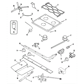 This top burner valve controls gas flow to a single surface burner, restoring reliable ignition and adjustable flame control for gas cooktops. Replaces a worn or leaking burner valve to help stop uneven flames and gas smell. What it does: