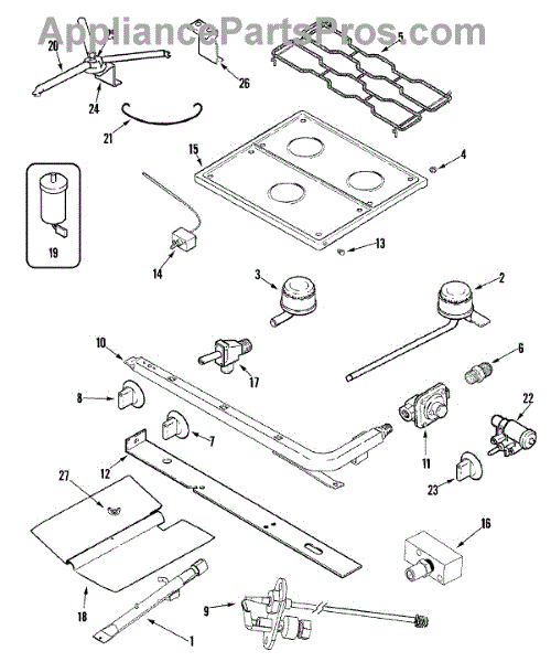 This top burner valve regulates the gas flow to a cooktop surface burner, restoring proper ignition and flame control for safe, efficient cooking. It replaces a worn or leaking burner valve to help burners light and maintain a steady flame. What it does:
