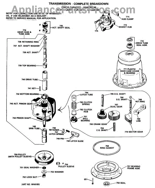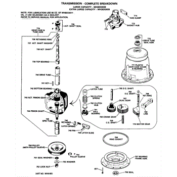 Parts for Ge WLW3700BCL: 04 - Tranmission - Complete Breakdown Parts