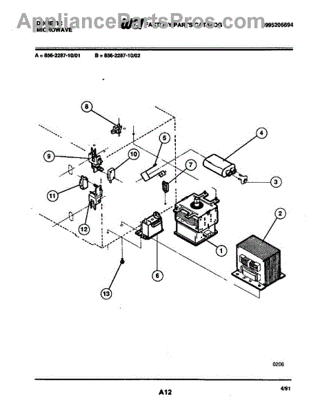 Parts for Frigidaire 856-2287-10/01: 04 - Transformer Parts