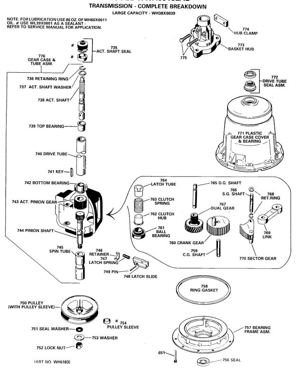 Parts for Ge WWA8318LAL: 04 - Transmission-Complete Breakdown Parts