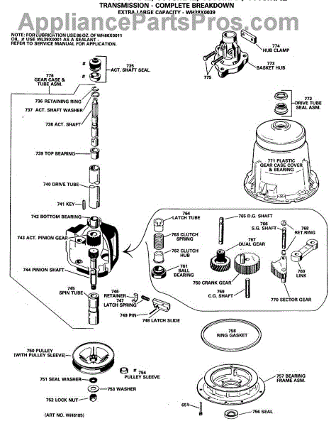 Parts for Ge WWA8608MAL: 04 - Transmission - Complete Breakdown Parts