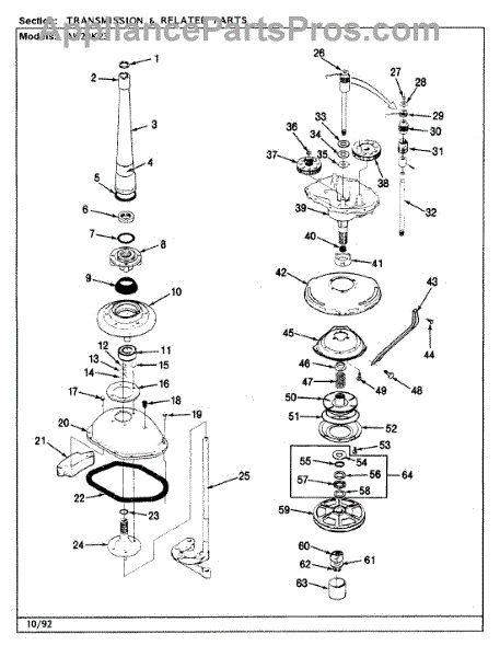 The Thrust Bearing Kit is an OEM part for Whirlpool washing machines. This kit is essential for the proper operation of the washer's transmission system, allowing the drive system to engage smoothly and efficiently.