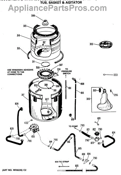 Parts for Ge WWA5600SALAA: 04 - Tub, Basket & Agitator Parts