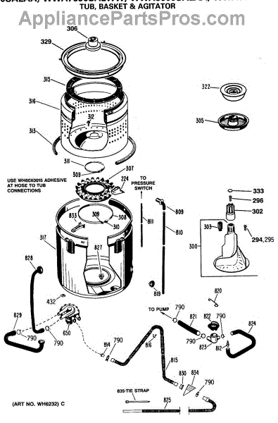Parts for Ge WWA6600SALWW: 04 - Tub, Basket & Agitator Parts