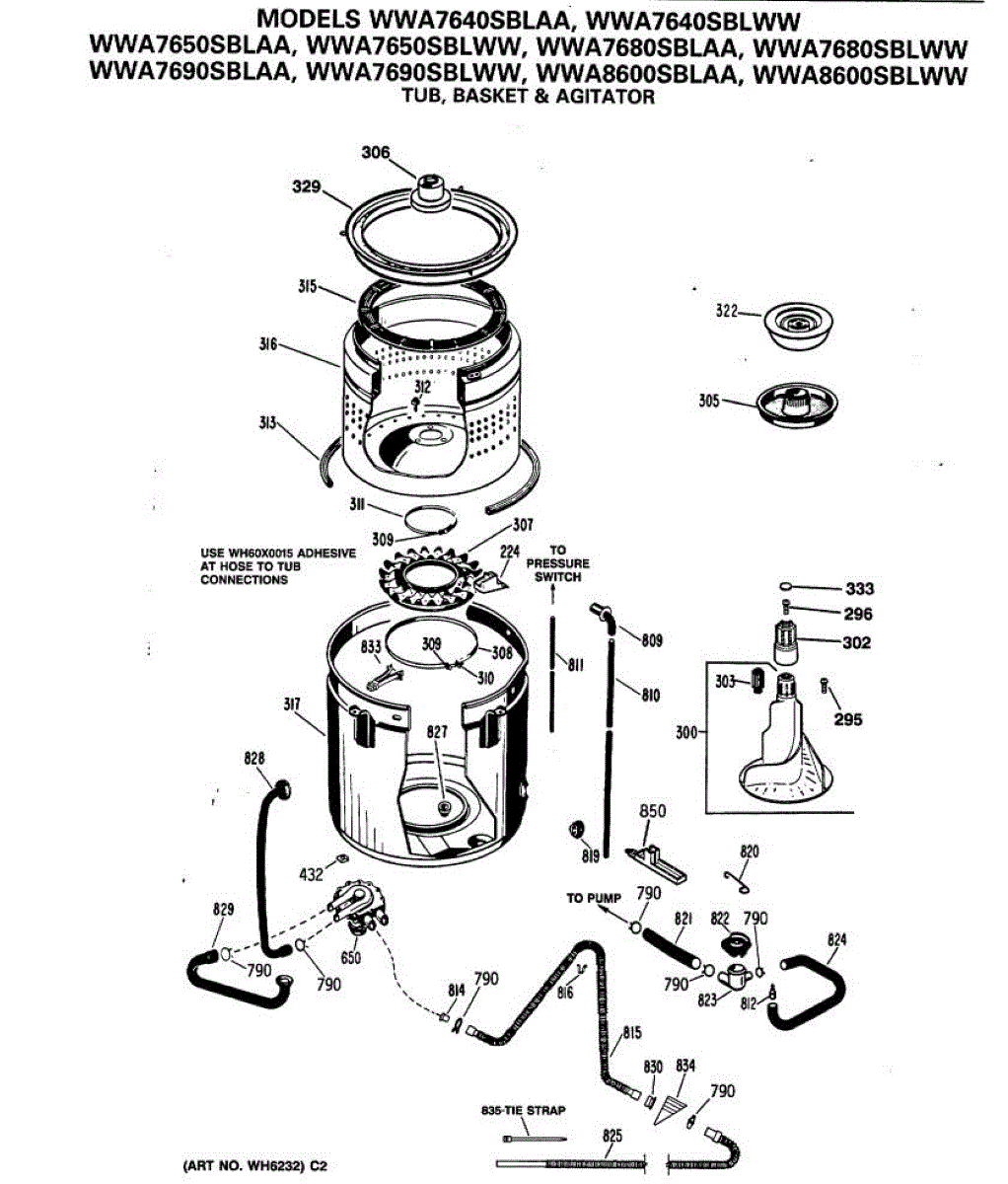 Parts for Ge WWA7680SBLWW: 04 - Tub, Basket & Agitator Parts