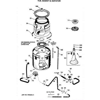 Parts for Ge WWA8610SALWW: 04 - Tub, Basket & Agitator Parts