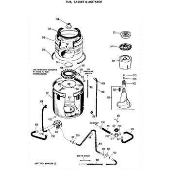 Parts for Ge WWA8620RBL: 04 - Tub, Basket & Agitator Parts