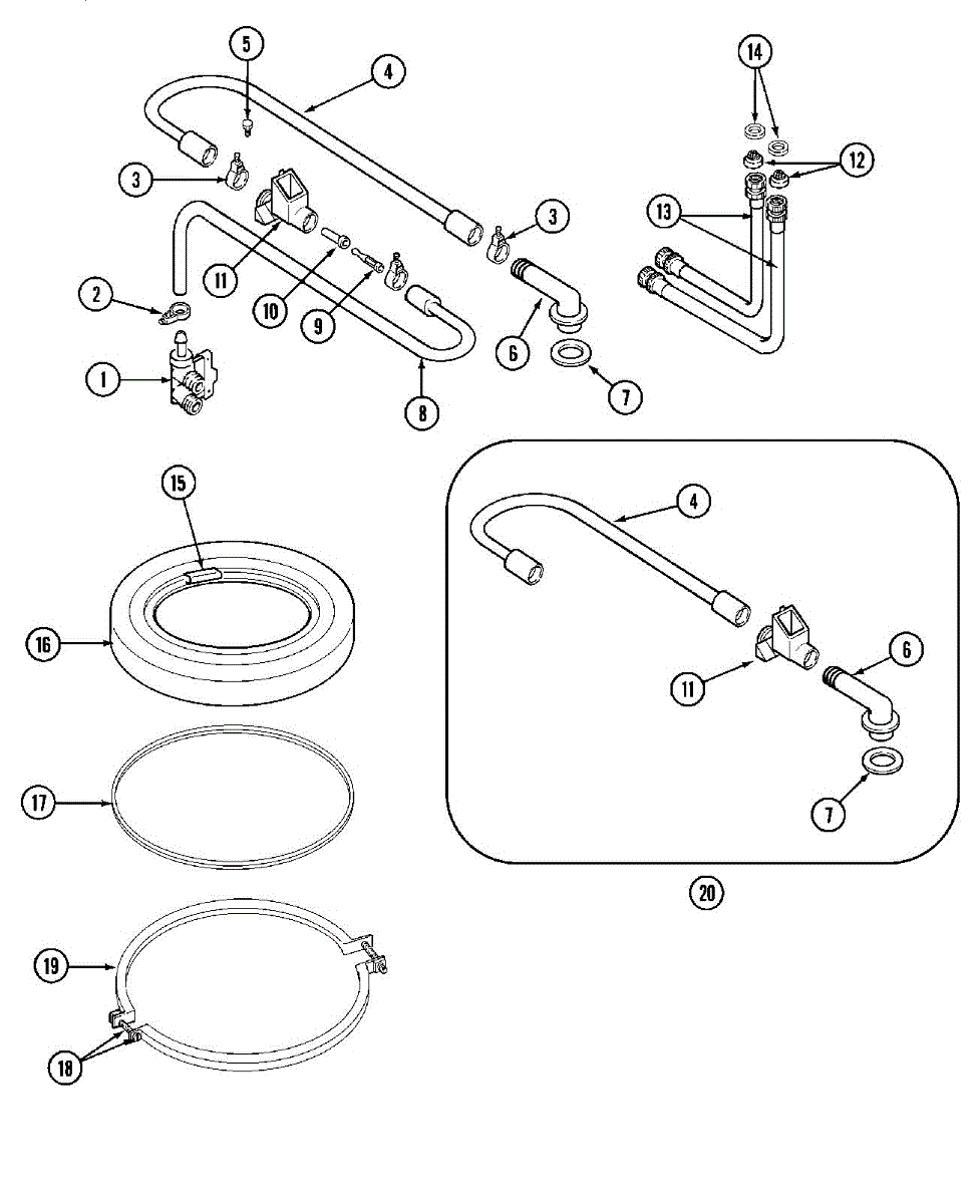 Hose washer and plastic insert for inlet hose. To order separately: for washer use WPY013783, for strainer use WP22002960.