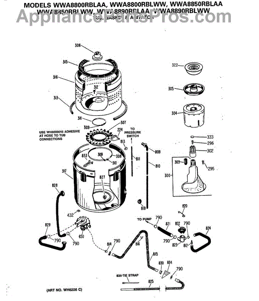 Parts for Ge WWA8850RBLWW: 04 - Tub, Gasket & Agitator Parts
