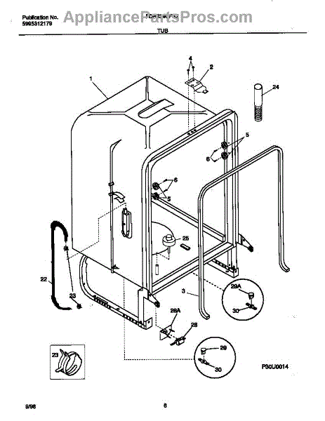 The Water Inlet Tubing is an OEM part for Frigidaire dishwashers. This tubing allows water to flow from the home's water supply lines into the dishwasher. Properly functioning inlet tubing is essential for supplying water to fill cycles and operate through different wash and rinse cycles. Causes of a bad water inlet tubing can include mineral or sediment build up inside the tubing restricting water flow, splitting or cracking of the tubing material from stress or age, or damage from sharp objects or wear and tear. Symptoms of a bad water inlet tubing include: