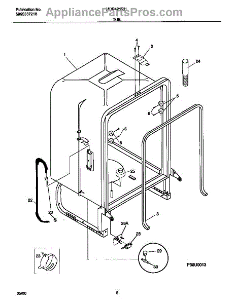 The Dishwasher Drain Trap is an OEM part for Frigidaire dishwashers. It plays a crucial role in preventing debris from clogging the dishwasher's drain system, ensuring efficient water flow during the wash cycle. The drain trap collects food particles and other debris, preventing them from entering the drain pump and causing blockages.