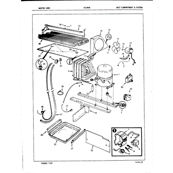 Plastic defrost pan. Evaporator pan hangs from side rails and rests on compressor.