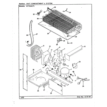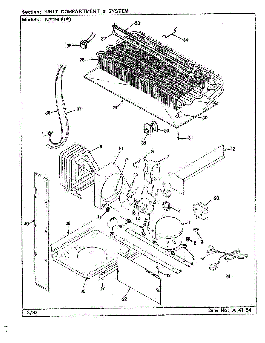 Plastic defrost pan. Evaporator pan hangs from side rails and rests on compressor.