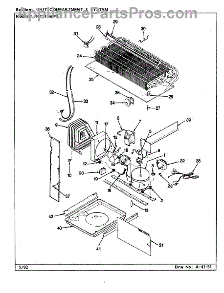 Plastic defrost pan. Evaporator pan hangs from side rails and rests on compressor.