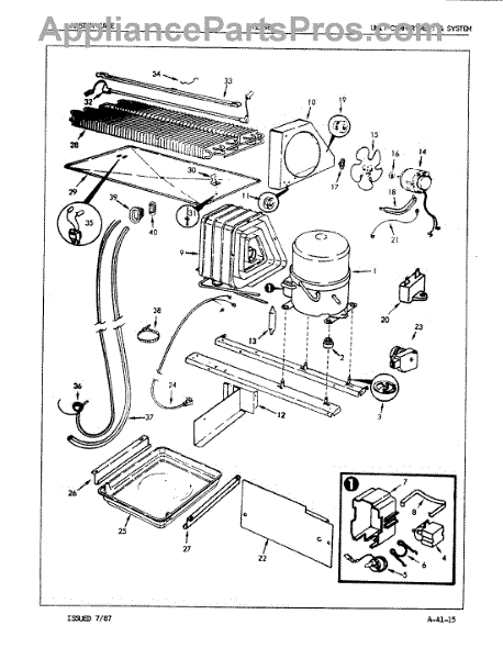 Plastic defrost pan. Evaporator pan hangs from side rails and rests on compressor.