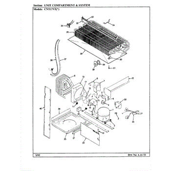 Plastic defrost pan. Evaporator pan hangs from side rails and rests on compressor.