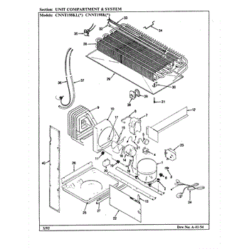 Plastic defrost pan. Evaporator pan hangs from side rails and rests on compressor.