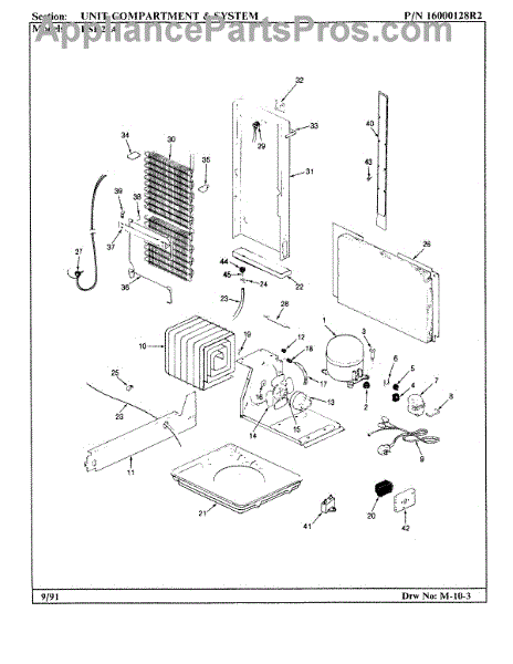 Plastic defrost pan. Evaporator pan hangs from side rails and rests on compressor.