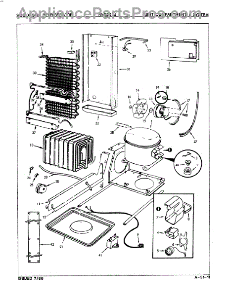 Plastic defrost pan. Evaporator pan hangs from side rails and rests on compressor.