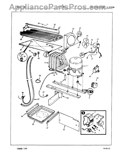 Plastic defrost pan. Evaporator pan hangs from side rails and rests on compressor.