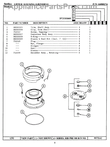 Parts for Maytag DFC0300AAX: 04 - Upper Housing / Grinding (Dfc0300aax) Parts