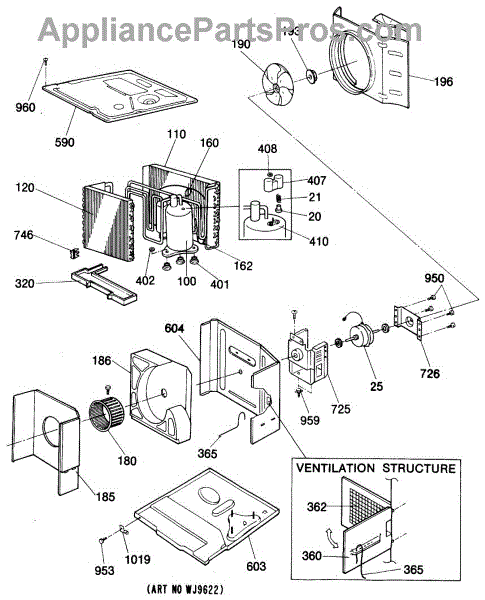 Parts for Ge KVM18DBM1: 04 - Ventilation Structure Parts