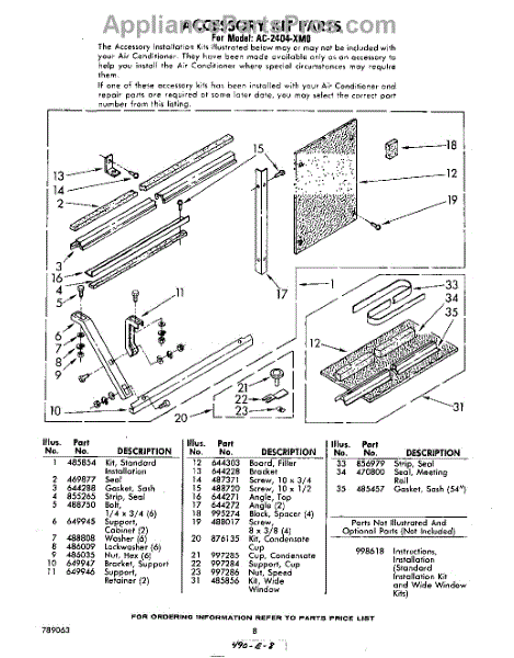 Parts for Whirlpool AC2404XM0: 05 - Accessory Kit Parts