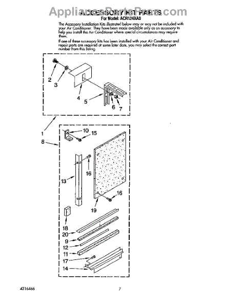 Parts for Whirlpool ACR124XA0: 05 - Accessory Kit Parts