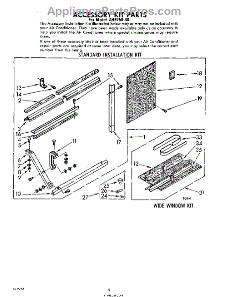 Parts for Whirlpool AHF25040: 05 - Accessory Kit Parts