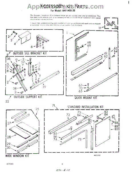Parts for Whirlpool AHFH0820: 05 - Accessory Kit Parts