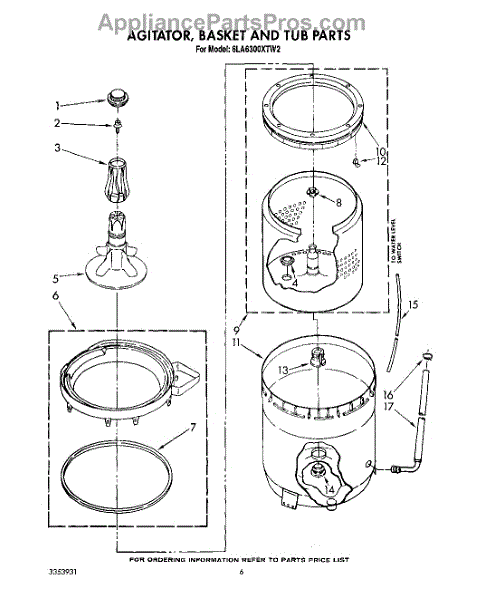 Parts for Whirlpool 6LA6300XTM2: 05 - Agitator, Basket And Tub Parts