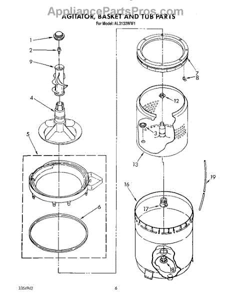 Parts for Whirlpool AL3132WL1: 05 - Agitator, Basket And Tub Parts