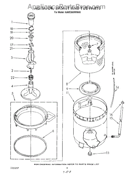 Parts for Kitchenaid KAWE660WAL0: 05 - Agitator, Basket And Tub Parts
