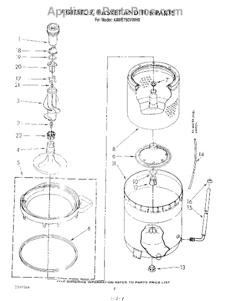Parts for Kitchenaid KAWE750VAL0: 05 - Agitator, Basket And Tub Parts