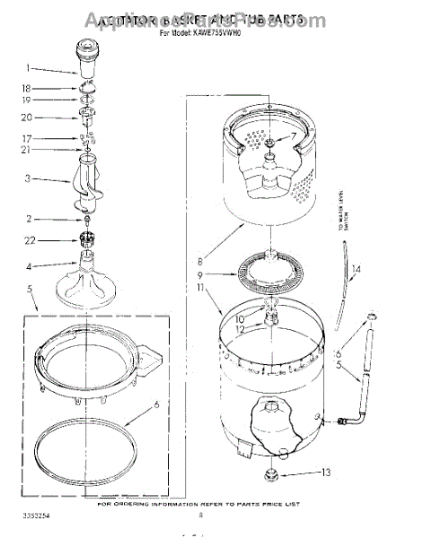Parts for Kitchenaid KAWE755VAL0: 05 - Agitator, Basket And Tub Parts