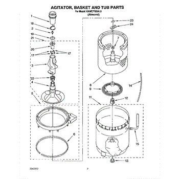 The Whirlpool top load washer agitator inner cap seal is an OEM replacement part responsible for providing a tight seal and preventing water from leaking in to the agitator. The inner cap seal is located underneath the agitator cap at the top of the agitator assembly.