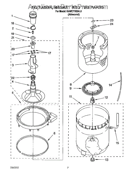 This is an inner tub basket intended for use with washing machines and combination washers and dryers. It is located inside the washing machine in the middle of the appliance. The inner tub basket is responsible for holding clothing during a washing cycle. It has an agitator in the middle and sides with holes so that water can leave when the tub is spinning. It is attached to the outer tub, which seals in the water.The inner tub basket can become damaged and cause loud noises, leak, or fail to drain. If this occurs, this component will need to be replaced. Basic tools will be needed for the process. Make sure the washing machine is unplugged for safety. The hoses will need to be removed before taking out the inner tub basket and replacing it with a new one. The inner tub basket is sold on an individual basis. It is an authentic OEM replacement part that is sourced directly from the manufacture. This part is compatible with washing machines and washer/dryer combination appliances made by Inglis, Estate, Admiral, Crosley, Roper, Magic Chef, Amana, KitchenAid, Maytag, Kenmore, and Whirlpool.